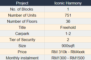 Iconic Harmony will features a 36-storey condominium, offering 751 affordable housing units. Each unit will boast a comfortable standard size of 900 sq. ft., providing ample space for residents. The development will also include seven levels of car parking podium, ensuring convenient parking for residents, with additional facilities located on the eighth level.